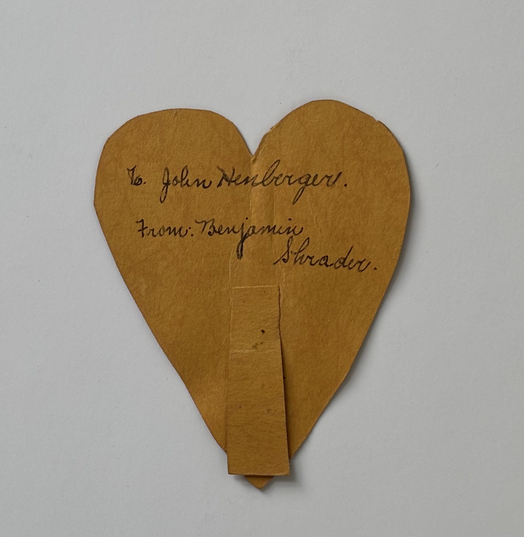 Homemade Valentines Heart to John Henneberger from Benjamin Shroder